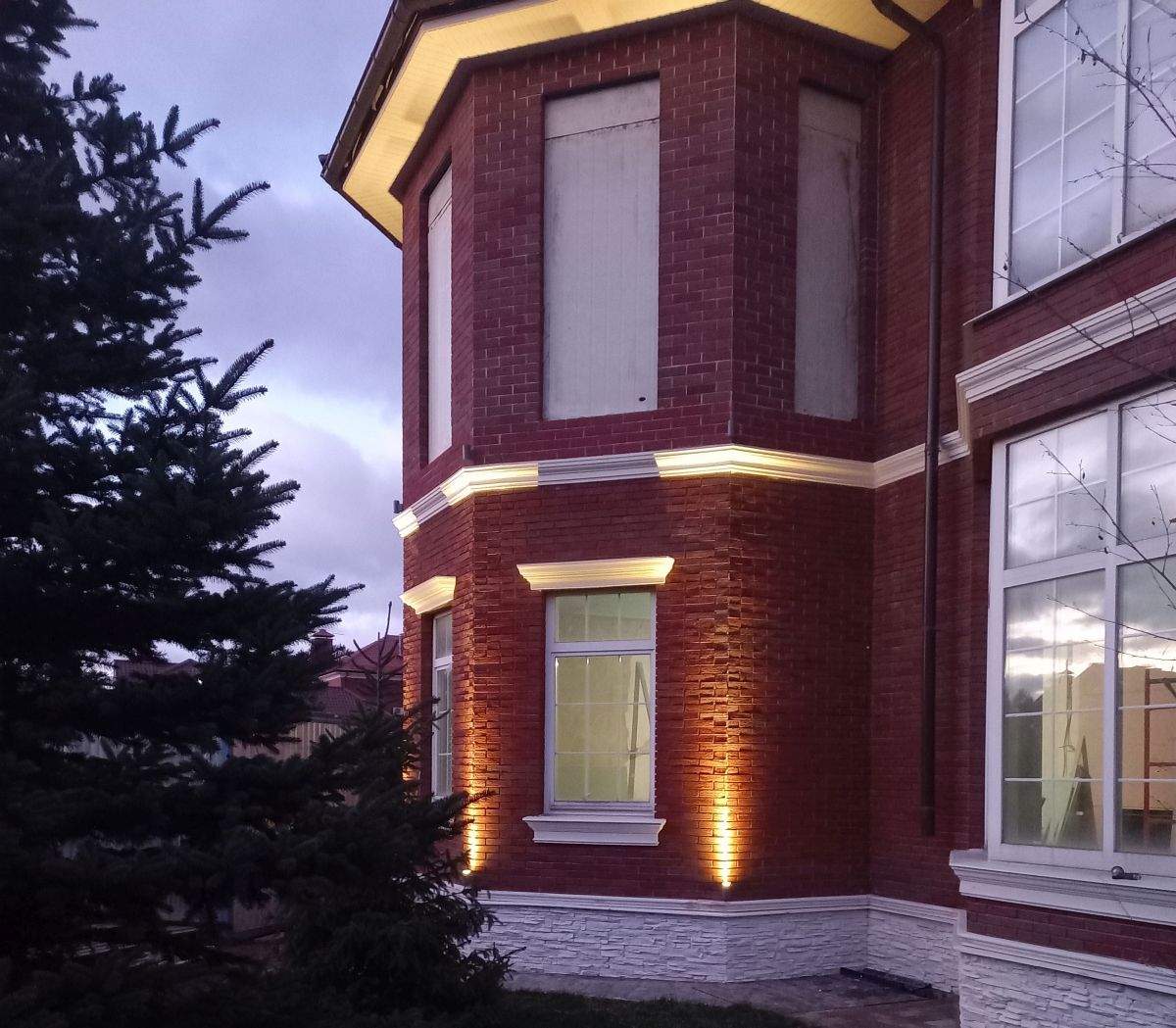 Ошибка: Использование холодного света на теплом кирпиче может дать «грязный», серо-фиолетовый неприятный оттенок, который визуально умертвит фасад и сделает его безжизненным.