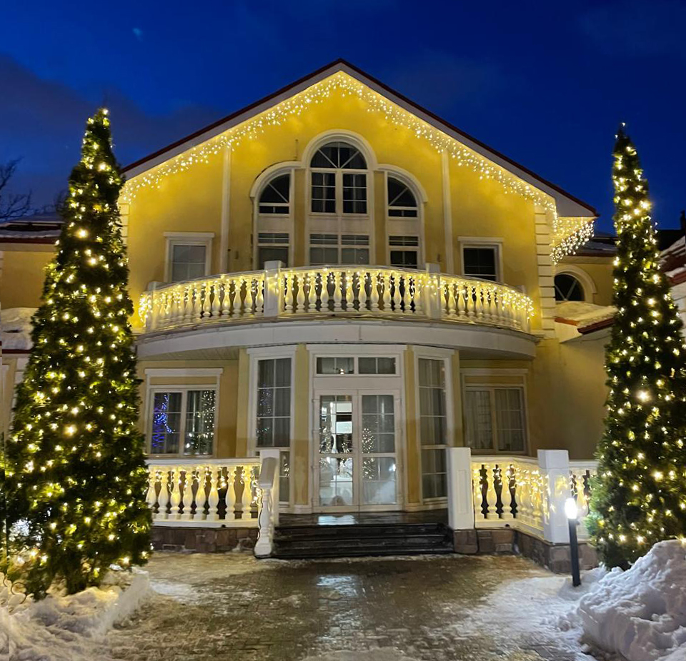 Мечтаете о доме, как с обложки журнала про Новый год? Гирлянды, мерцающие по контуру крыши, светящиеся деревья в саду, изящные акценты на окнах и колоннах...