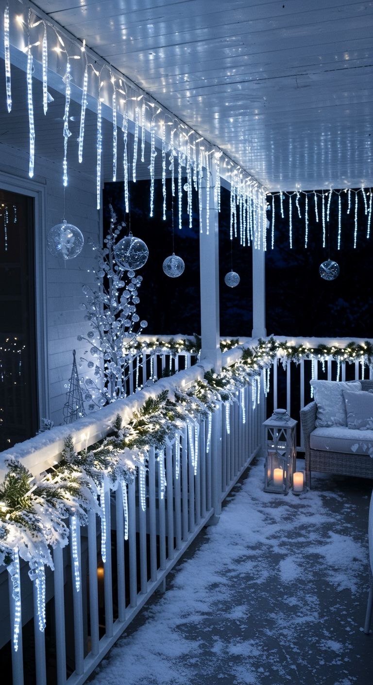 Идея 7: Динамичные LED-сосульки на перилах